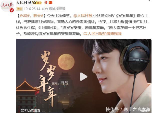 10月6日,肖战献唱的中秋主题新歌《岁岁年年》全平台上线,瞬间引爆全网热度。 这几个喜讯就足以证明肖战的实力。