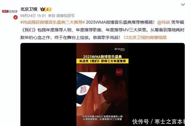 而这一行为也是高度肯定了肖战在演艺事业的实力。 在今年9月24日,肖战的专辑《我们》在微博音乐盛典获得“年度推荐人物,年度推荐歌曲,年度推荐MV”三个推荐。