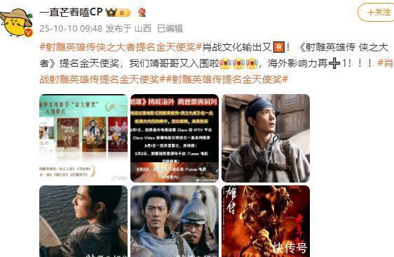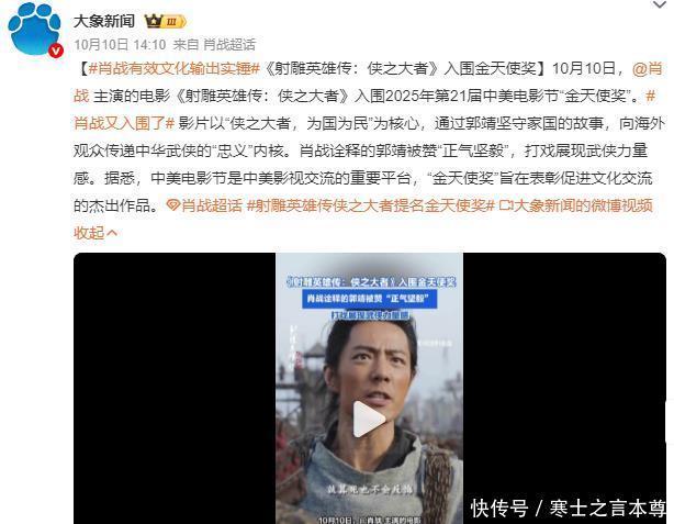 但就在近日,肖战又迎来了一个喜讯。 他主演的电影《射雕英雄传:侠之大者》成功提名金天使奖。