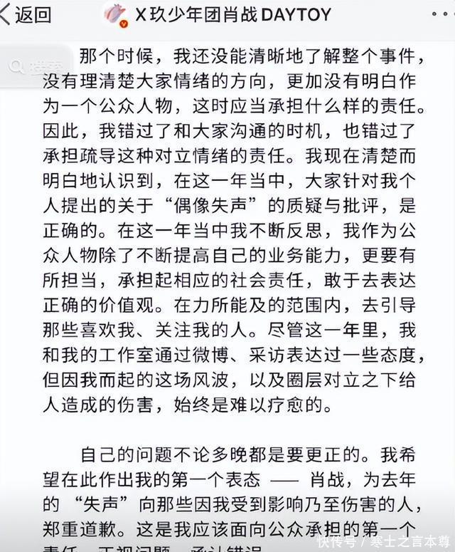 另一部分网友则觉得,这件事存在网络暴力现象,将粉丝行为完全归结于了艺人。 而在事件后,肖战作为公众人物也积极承认自身失责,主动正视了自己的不足。